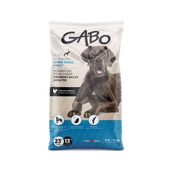 La nourriture pour chiens grandes races Gabo formule au poulet est spécialement conçue pour offrir à votre chien un assortiment complet d’ingrédients sains, afin de lui procurer une alimentation adaptée et de qualité supérieure. La formule contient des suppléments de glucosamine et de chondroïtine qui supportent la santé des articulations, ce qui est particulièrement important chez les chiens de grande race.