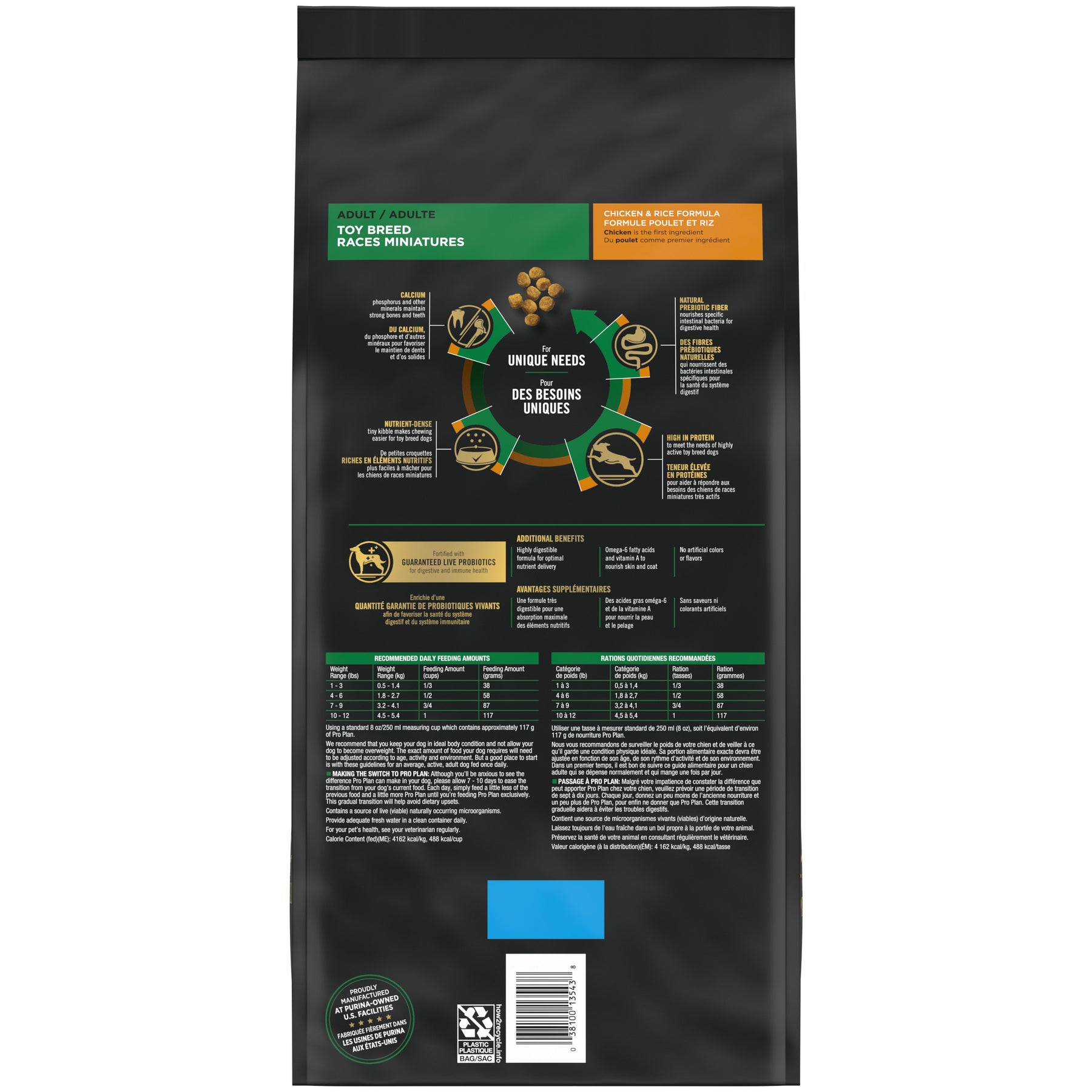 Cette formule saine et savoureuse pour les chiens adultes de race miniature de ProPlan contient du vrai poulet comme premier ingrédient. La teneur élevée en protéines aide à maintenir une condition physique idéale. Enrichie d’une quantité garantie de probiotiques vivants afin de favoriser la santé des systèmes digestif et immunitaire, cette formule alléchante contient des morceaux de petites croquettes que votre chien de race miniature peut facilement mâcher et une délicieuse saveur dont il ne pourra plus se passer.