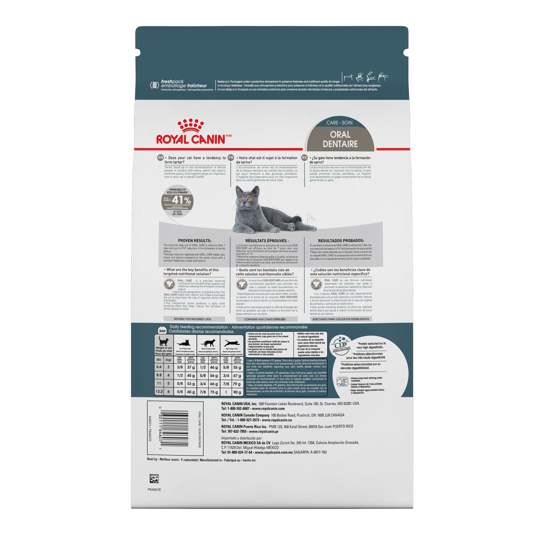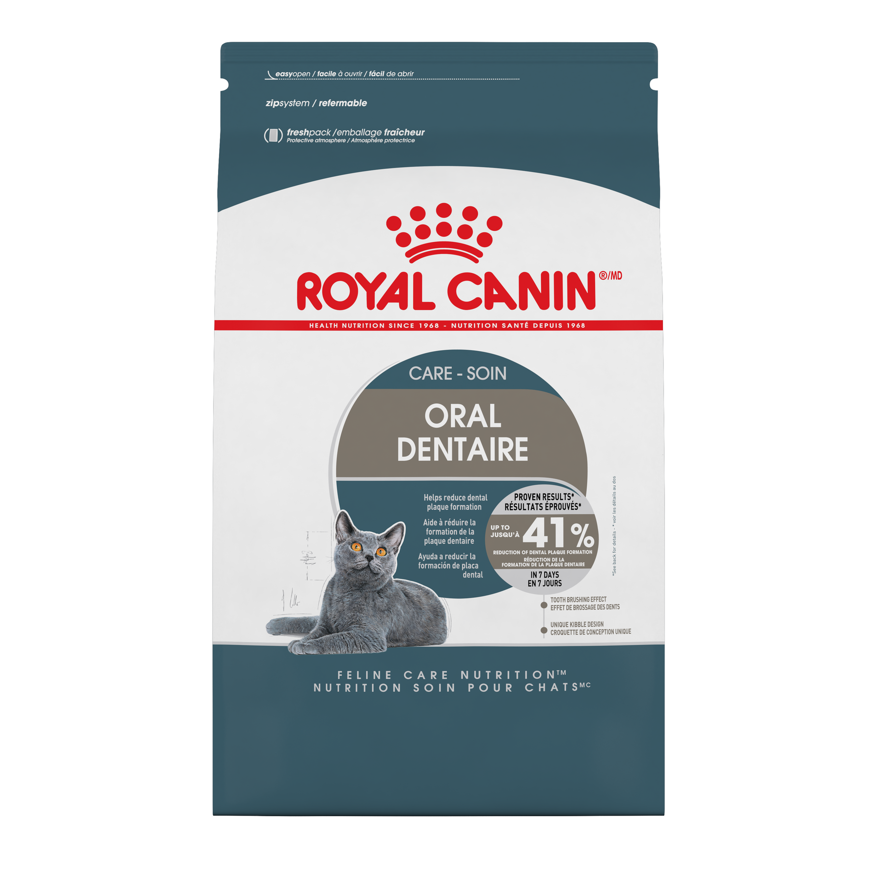 Formulée pour les chats adultes, Royal Canin Soin Dentaire aide à soutenir une bonne hygiène buccodentaire au quotidien. De nombreux chats peuvent développer des problèmes dentaires pouvant entraîner l’accumulation de plaque et de tartre ainsi que la mauvaise haleine. Cette recette est composée de croquettes à la forme et à la texture spécialement conçues pour produire un effet de brossage lors de la mastication, aidant ainsi à nettoyer les dents et à limiter la formation de plaque.